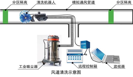 (3)最后將清掃機器人放入主風(fēng)管道內(nèi)完成主風(fēng)管道的精度清洗工作。