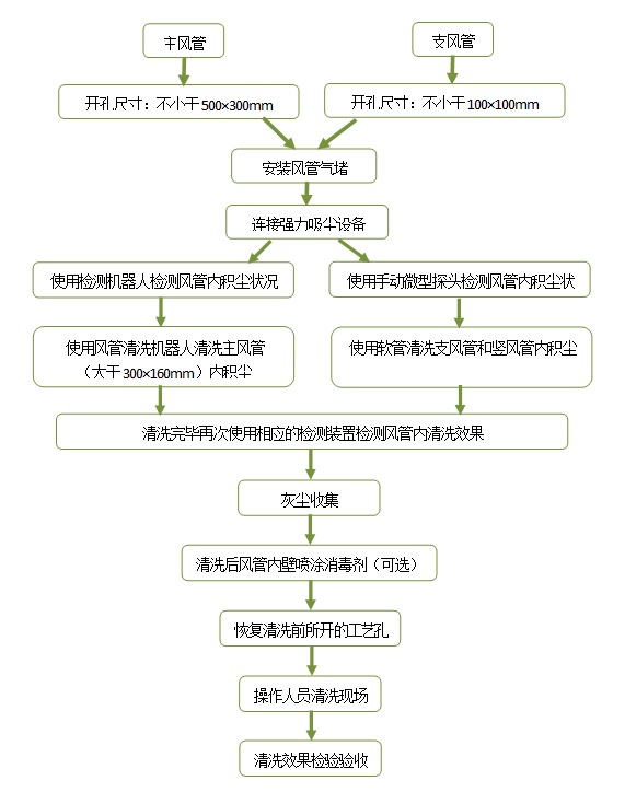 (2)檢測清洗后的風(fēng)道內(nèi)應(yīng)目測無明顯殘留灰塵、無工程垃圾、管壁無積垢。