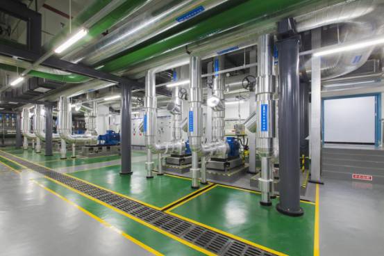 空調換熱機房布局合理,設備運行可靠,支架安全、可靠、大氣,標識清晰。