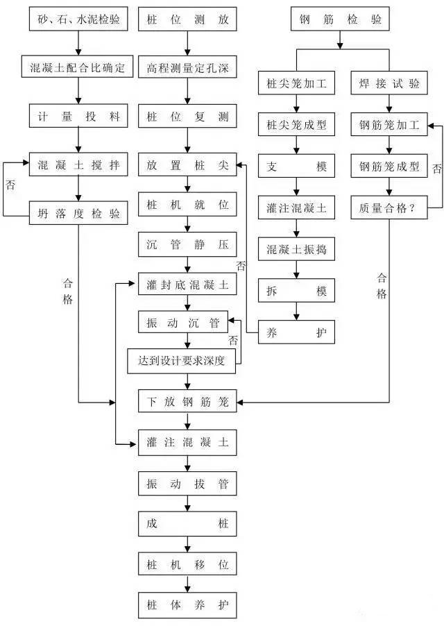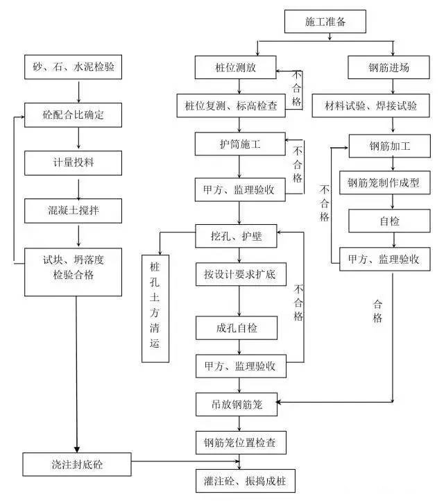 樁基是壹種古老的基礎(chǔ)型式。樁工技術(shù)歷經(jīng)了幾千年的發(fā)展過(guò)程。無(wú)論是樁基材料和樁類(lèi)型,還是樁工機(jī)械和施工方法等都有了巨大的發(fā)展,已形成了現(xiàn)代化基礎(chǔ)工程體系。在有些情況下,采用樁基能大量減少施工現(xiàn)場(chǎng)工作量與材料之消耗。由于樁基種類(lèi)繁多,施工工藝差異大,在此總結(jié)整理十四種樁基施工流程圖,僅供對(duì)比參考之用。
