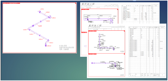 3) 導(dǎo)出管道分段加工圖紙和下料圖,并將圖紙交付工廠照?qǐng)D加工預(yù)制,加工完成后按照現(xiàn)場(chǎng)施工節(jié)點(diǎn)逐次進(jìn)場(chǎng),進(jìn)行裝配。