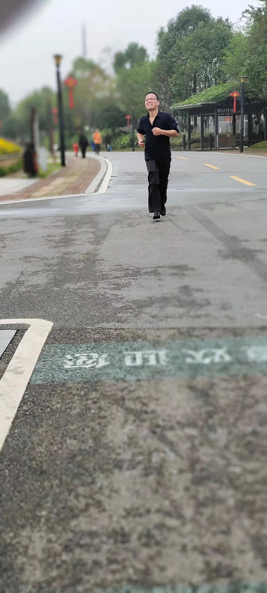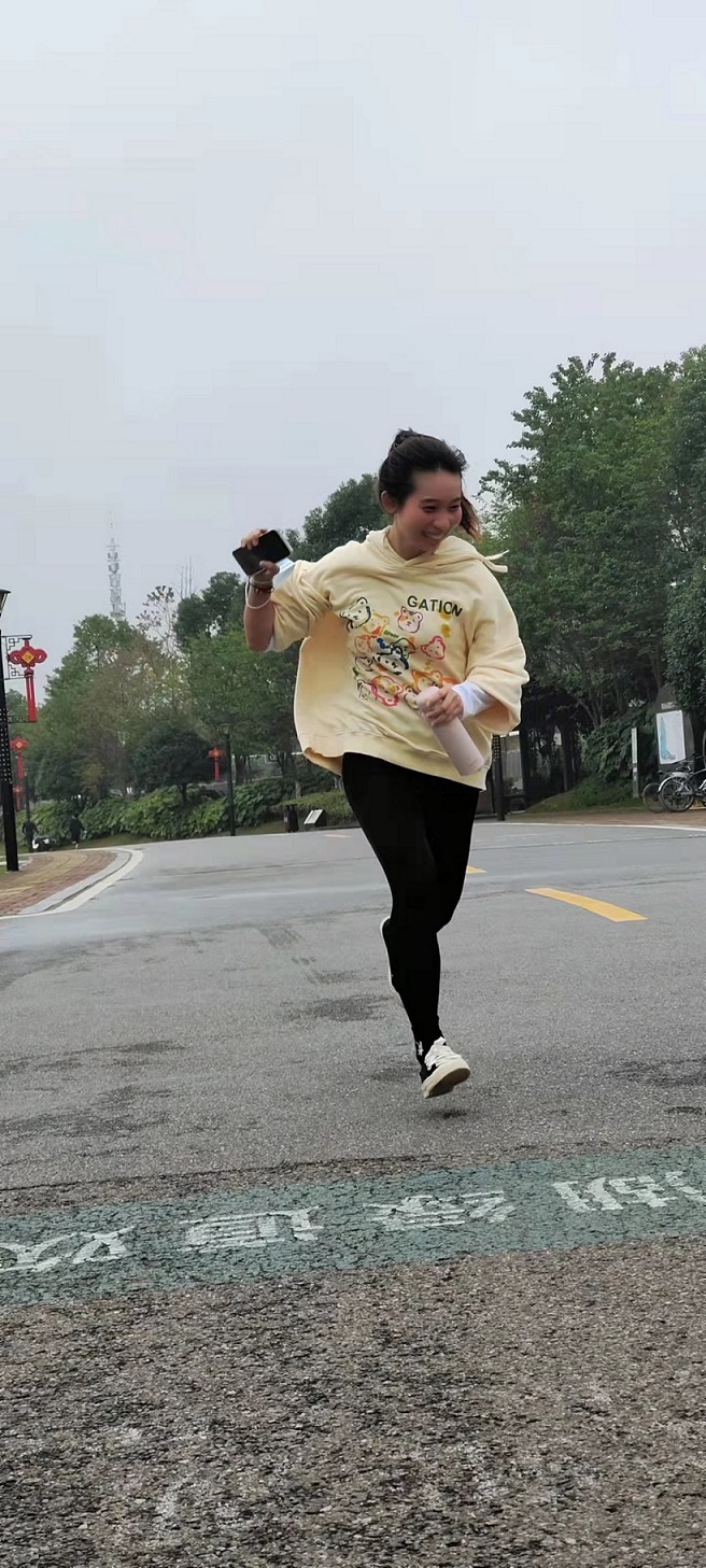 看,這就是冠軍選手的英姿!財務(wù)部的袁經(jīng)理沖在了最前面,僅用1小時09分52秒率先到達(dá)了終點!