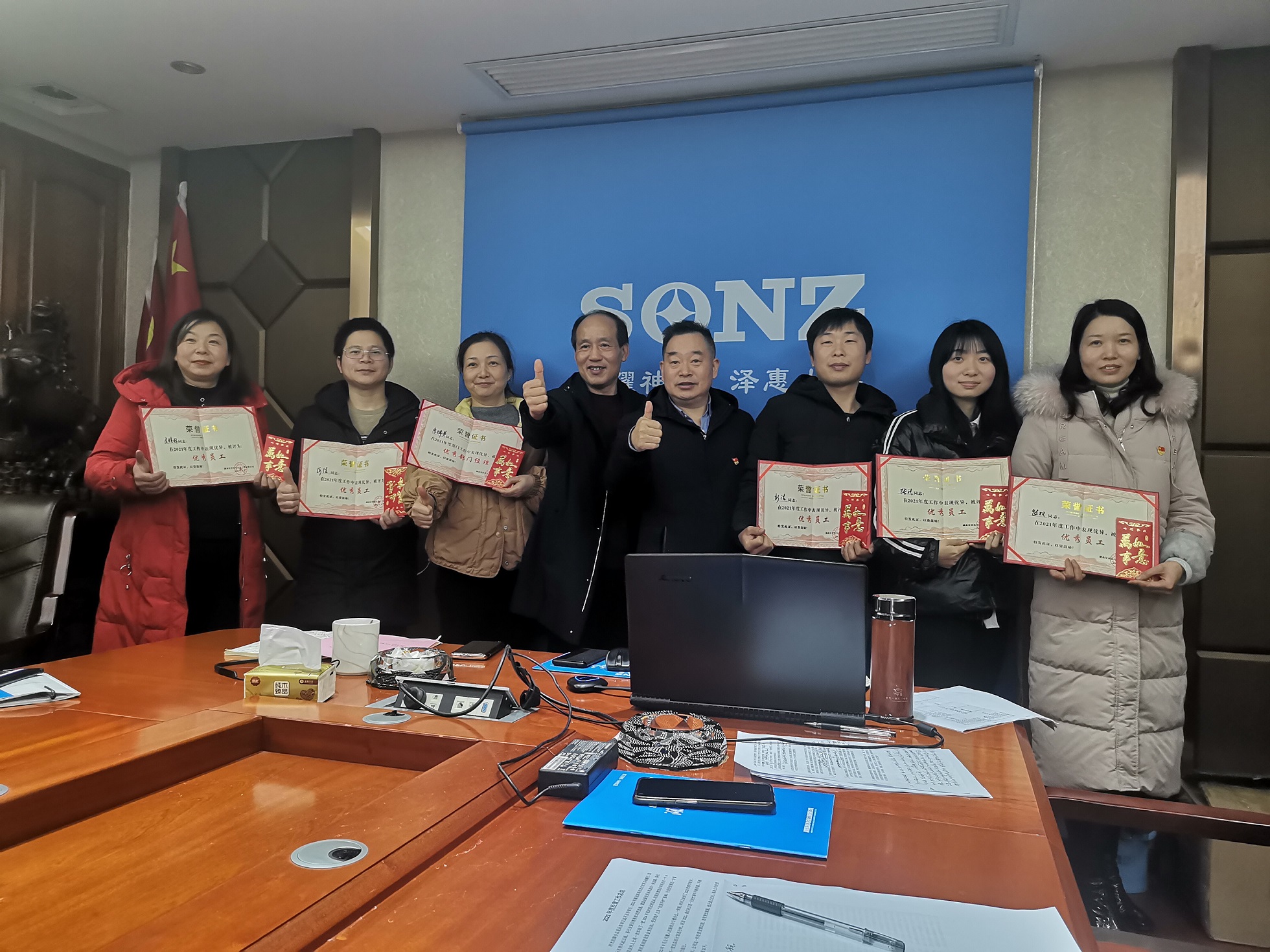 年度優(yōu)秀員工和公司董事長(zhǎng)、總經(jīng)理合影留念