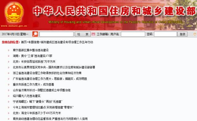 到2020年末,全面完成城市建成區(qū)違法建設(shè)治理任務(wù),并形成長效管控機(jī)制。并在住建部官網(wǎng)建立專欄,隨時(shí)發(fā)布信息。