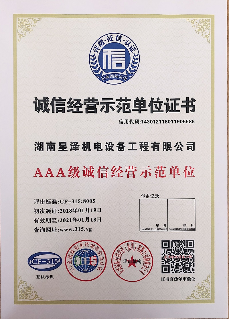 國家權(quán)威機(jī)構(gòu)通過認(rèn)證、審查針對(duì)我公司的信用記錄、經(jīng)營狀況、財(cái)務(wù)指標(biāo)、發(fā)展前景,結(jié)合國家及地方政府相關(guān)政策及現(xiàn)狀、本著公平、公正、獨(dú)立、客觀、科學(xué)的原則,評(píng)定我公司綜合信用等級(jí)為:AAA級(jí)