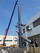 康寶萊星沙工廠鍋爐煙囪使用已達(dá)五年之多,原設(shè)計為5mm厚普通碳鋼材質(zhì),支管ф600mm,主管ф800mm,垂直高度16m。因在2013年經(jīng)過鍋爐節(jié)能改造后,鍋爐排放的煙氣為低溫?zé)煔猓ā?5°),煙道內(nèi)冷凝了大部分冷凝水,而中高溫水是強(qiáng)氧化劑,這樣煙氣冷凝水(含硫)對碳鋼煙囪腐蝕氧化嚴(yán)重。經(jīng)過專業(yè)檢測人員對鍋爐煙囪做檢測,只有1.5mm厚 ,存在倒塌安全隱患,并且煙囪頂帽固定支桿腐蝕嚴(yán)重,有被狂風(fēng)刮落的安全隱患。由于存在以上的安全隱患,康...