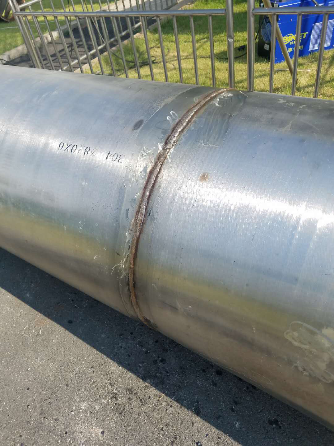 半成品到達現(xiàn)場后,我司專業(yè)施工人員對煙囪先對照已繪制好的組裝圖紙開始進行焊接組裝,在開始焊接組裝時,由于不銹鋼管道較厚,為了保證焊接質(zhì)量和讓焊縫焊透使焊接牢固,現(xiàn)場在焊口對接位用坡口機進行打坡口,合格后再焊接