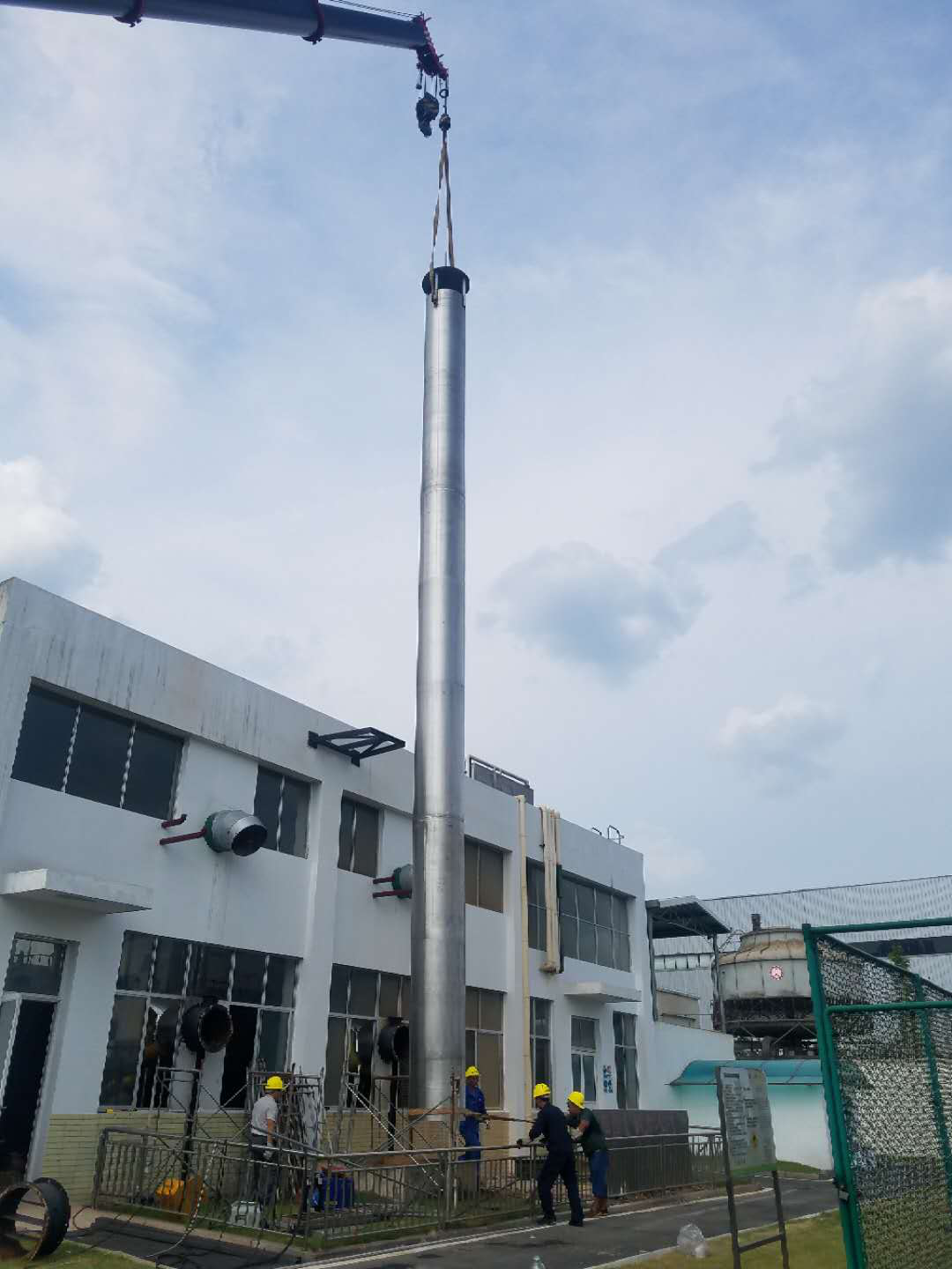 拆除完畢后,對原有基礎(chǔ)進行處理,處理好后對新不銹鋼主煙囪吊裝就位調(diào)直