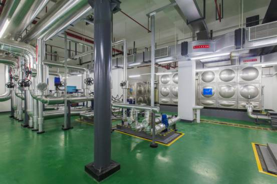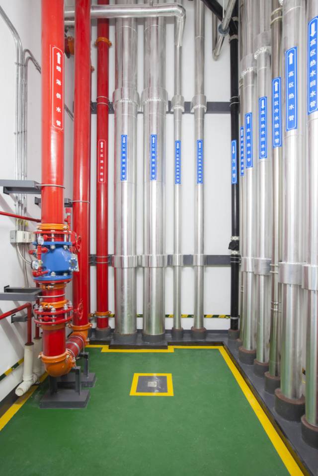 空調換熱機房布局合理,設備運行可靠,支架安全、可靠、大氣,標識清晰。