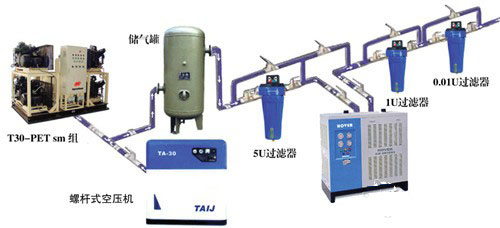 生產(chǎn)線動力壓縮空氣供應(yīng)站大多采用螺桿、離心式水冷方式實現(xiàn)對空氣壓縮后經(jīng)過濾、儲壓分配到各車間的生產(chǎn)線作加工動力用。