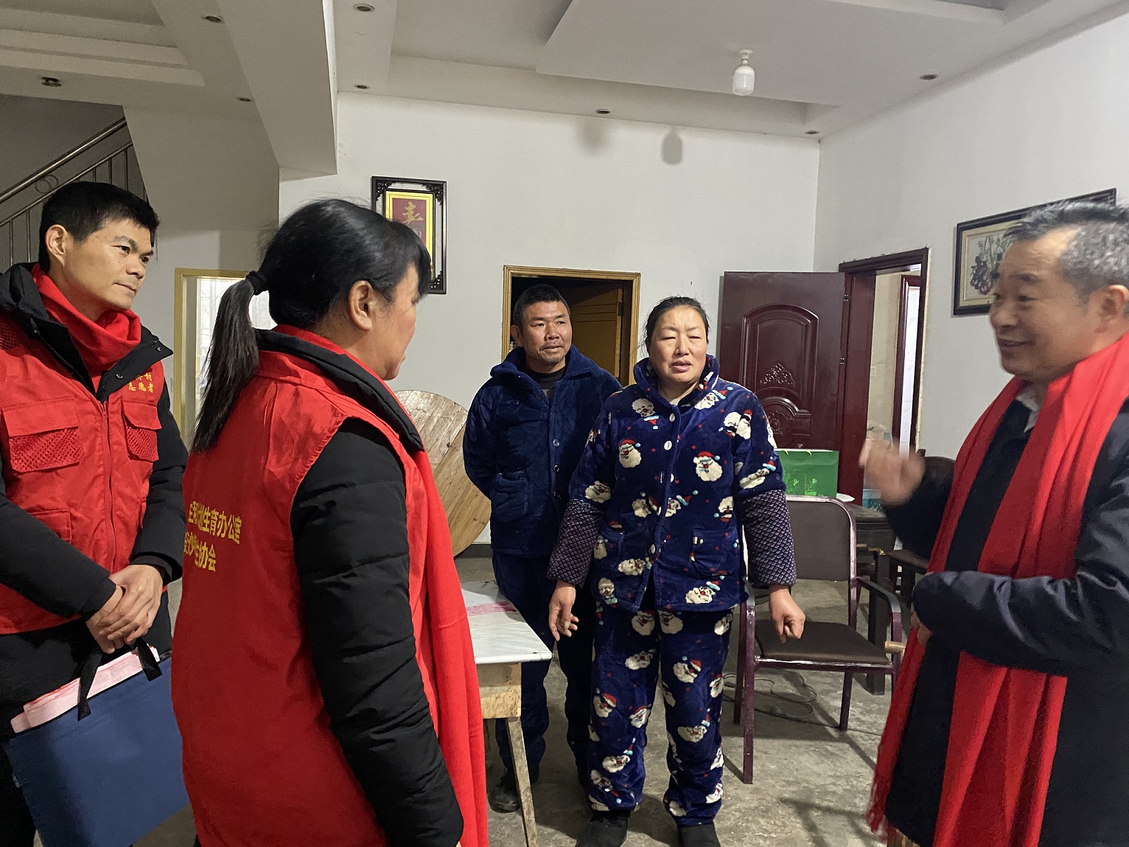 第三組志愿者來到金花坳組王建輝老人家中,老人的老公今年患重病去世,其無親屬子女,身患多種老年疾病,志愿者們奉上愛心紅包和禮包,祝愿老人家早日康復(fù),家庭早日過上幸福生活;