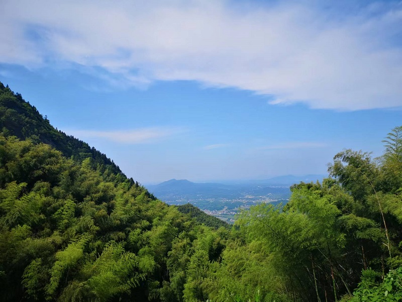 下午的天氣正好,氣溫也適宜,沿著神鼎山盤山公路,蜿蜒曲折,鉤紓盤環(huán)而上,欲去登峰造極。此地山深林密,天高氣爽,樹林和植物的芬芳清香四溢,對長期生活在城里的人是一種奢侈。天空像一片蔚藍色的海洋被如白浪一般的層云點綴,天地之美,人心之愜,讓人有天人合一的感受,好像是被天地所造化,讓人飄飄然,不知其所以,只有放聲嚎叫,求得到大地山神回應,以明其意。因為疫情防控和不是旅游勝地,至于負者歌于途,行者休于林,前者呼,后者應,傴僂提攜往來不絕者,不見也。路灣道長,一個時辰不到,大家就有點心力不從心,看看海拔也不算比岳峰低,而汨江北去的風景盡收眼底,如是也有些心滿意足了,此山也不愧為長沙北望第一山之稱。