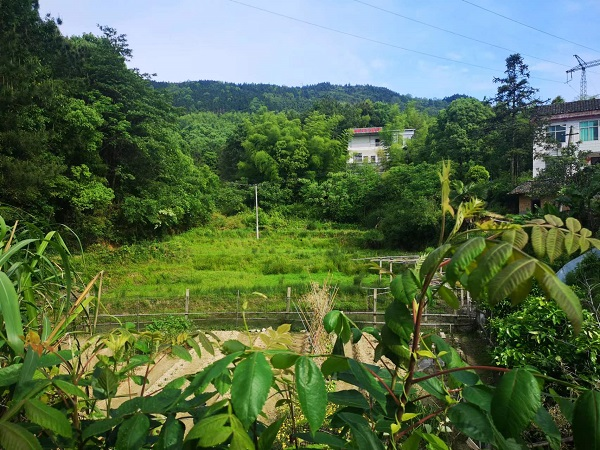大家稍作休息,出得屋子,沿著山居野徑放牛的足跡攀行,有山塘,有草地,塘中盡是渾水,是下雨時山水造成的,見水面上有很多水蛭像在冰面競跑似的,稍一有動靜,就箭一樣的離出好遠。朋友說這里面肯定有大魚,人問為何?他說:“水至清則無魚,人至清則無朋。那豈不是有大漁乎,可能還是大鵬呢”。又見東西兩邊山勢高起,南北兩岸的田地荒蕪,便是長得非常豐茂的草坡,周圍茂林修竹,前面垅畝相間,幾塊泥潭中的嶄露的幾根荷葉,足見它是一片荷塘,看來在六月來時它就有:接天蓮葉無窮碧,映日荷花另樣紅的盛況,小心會把人醉美的。