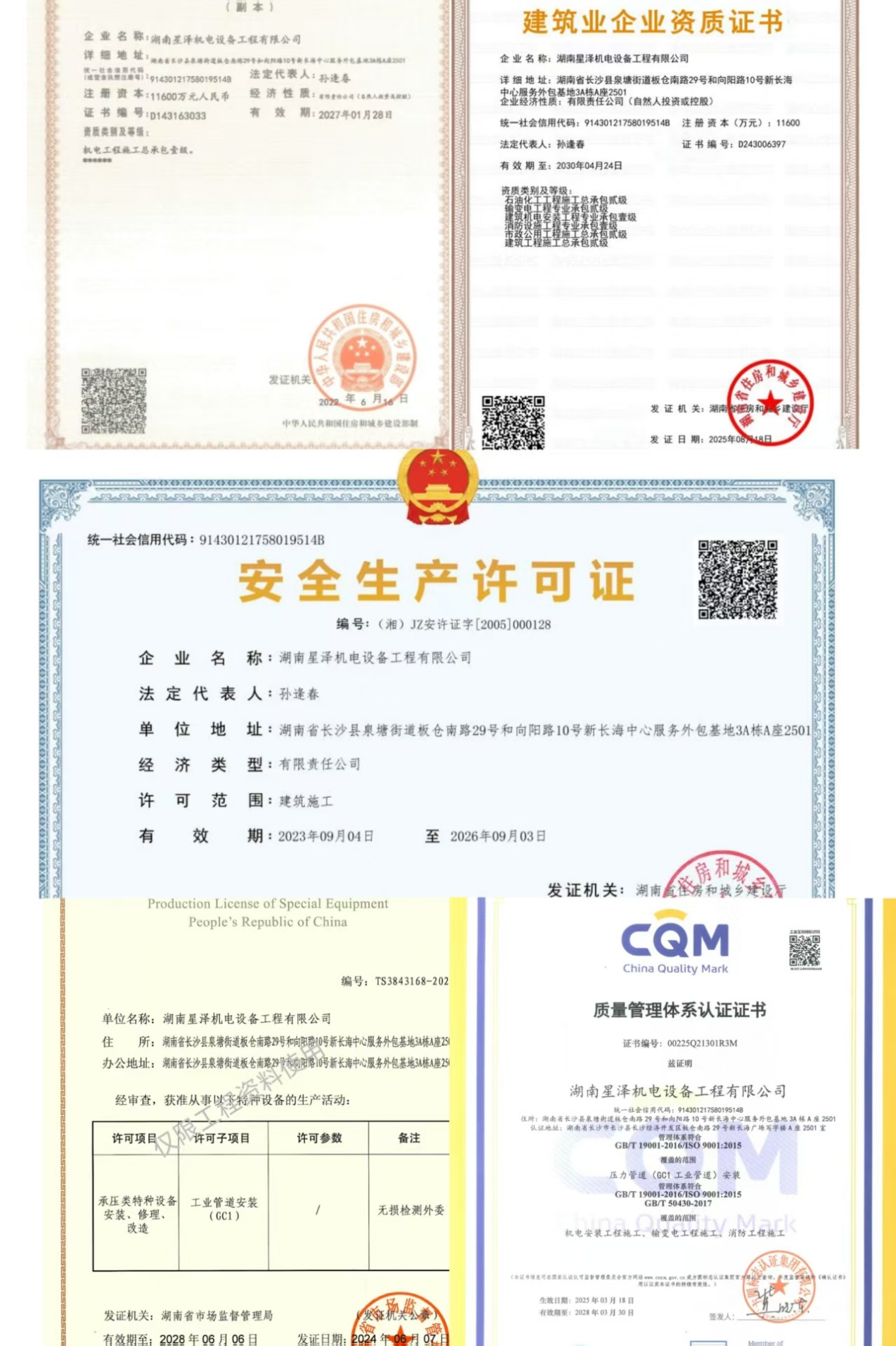 資質(zhì)是企業(yè)實(shí)力的 “通行證”,更是市場(chǎng)信任的 “定心丸”。此次圓滿完成資質(zhì)延續(xù),不僅是對(duì)星澤機(jī)電過往業(yè)績(jī)與專業(yè)能力的高度認(rèn)可,更是公司未來發(fā)展的新起點(diǎn)。未來,星澤機(jī)電將以此次資質(zhì)升級(jí)為契機(jī),充分發(fā)揮多領(lǐng)域高等級(jí)資質(zhì)的協(xié)同優(yōu)勢(shì),在機(jī)電安裝、消防工程、壓力管道、市政建設(shè)等領(lǐng)域持續(xù)深耕,不斷提升工程質(zhì)量與服務(wù)水平,為客戶提供更優(yōu)質(zhì)、更高效的工程解決方案,同時(shí)積極參與區(qū)域基礎(chǔ)設(shè)施建設(shè)與產(chǎn)業(yè)升級(jí)項(xiàng)目,以實(shí)際行動(dòng)助力湖南乃至全國(guó)工程建設(shè)行業(yè)的高質(zhì)量發(fā)展,書寫星澤機(jī)電更加輝煌的新篇章!