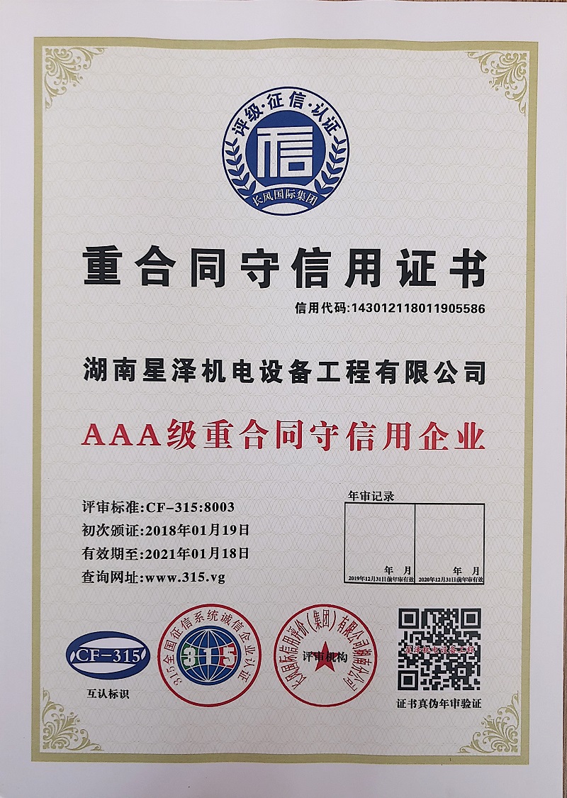 國家權(quán)威機構(gòu)通過認證、審查針對我公司的信用記錄、經(jīng)營狀況、財務(wù)指標、發(fā)展前景,結(jié)合國家及地方政府相關(guān)政策及現(xiàn)狀、本著公平、公正、獨立、客觀、科學的原則,評定我公司綜合信用等級為:AAA級