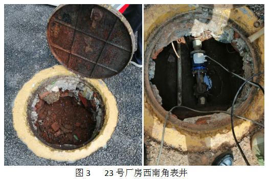1例如23號(hào)廠房西南角的表井,打開井蓋全部是泥土,表都看不到,井的尺寸也不大,僅能容下一個(gè)人,機(jī)具無法在里面施工。施工人員硬是憑著雙手向下挖出1米多深,清出井里的磚塊和淤泥。成功更換了智能水表。